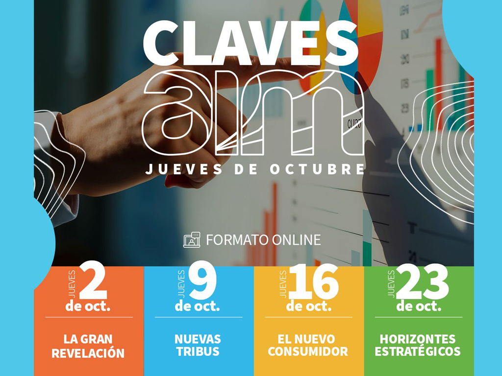 Y durante los Jueves de Octubre la Asociación de Investigadores de Mercado (AIM) presenta una nueva edición de Claves AIM, el evento que reúne a los líderes de insights & data en Chile para comprender el presente y anticipar el futuro. Este año, en formato online, el programa se desarrollará en cuatro jornadas temáticas durante octubre, cada una dedicada a las grandes transformaciones de la sociedad y el consumo: Su Programa es :